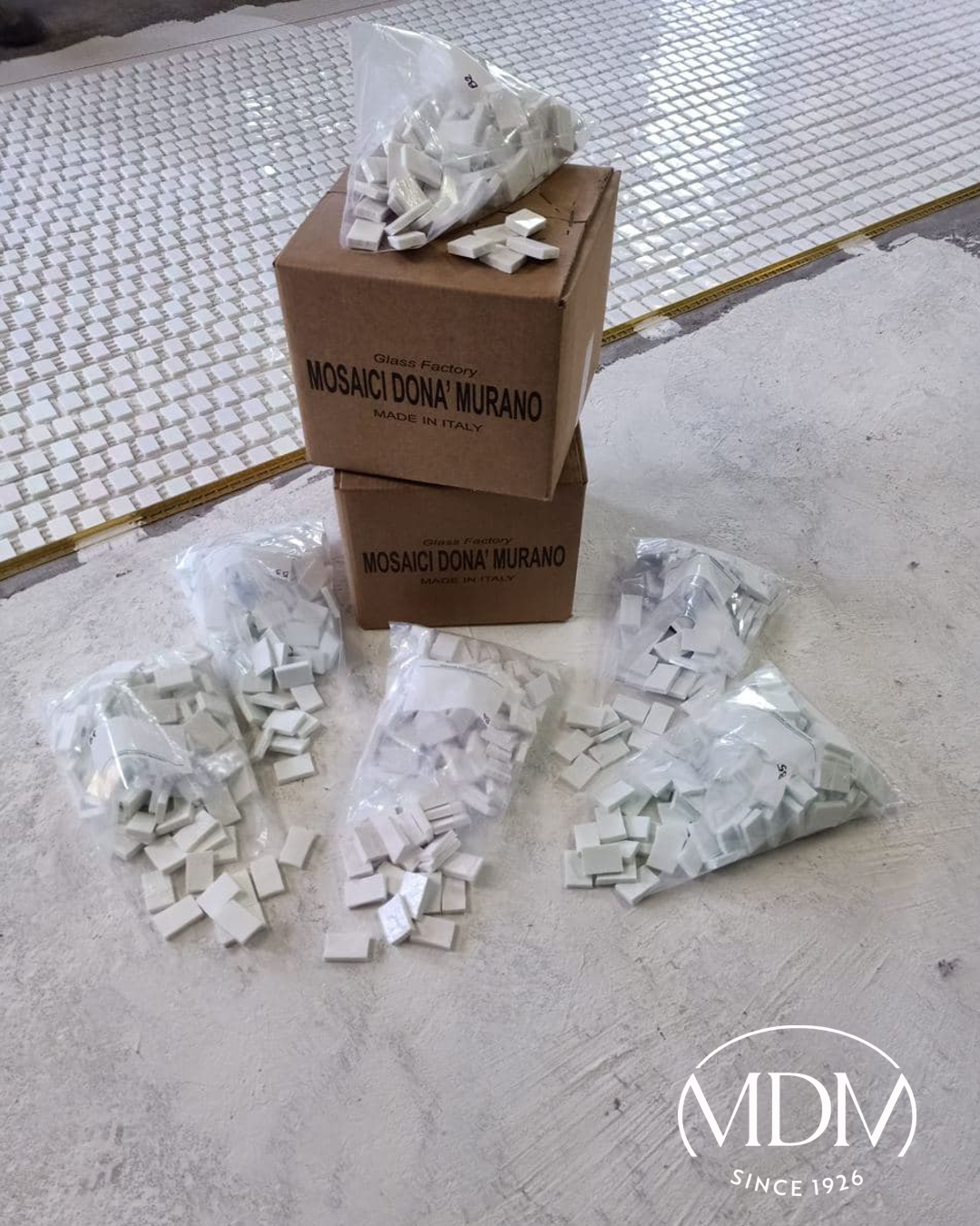 Aujourd’hui, Mosaici Donà Murano préserve et renouvelle cette tradition, en fournissant les tesselles pour les sols inspirés du style de Carlo Scarpa, où le verre devient langage architectural et matière poétique.