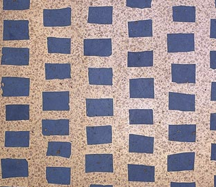 Il pavimento originale progettato dall’Architetto Carlo Scarpa presente nel negozio Olivetti di Venezia, inaugurato nel 1958, presenta quattro tinte: le miscele dei tre colori primari, rosso, giallo, blue, e in più la miscela di bianco.
